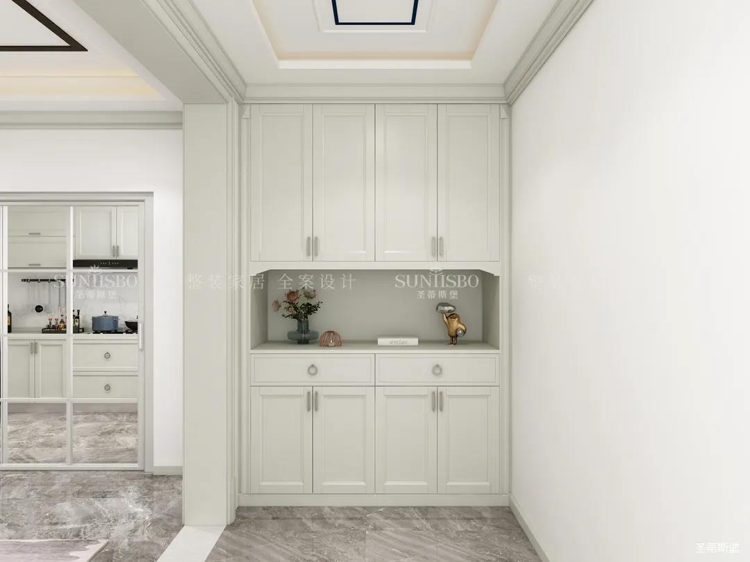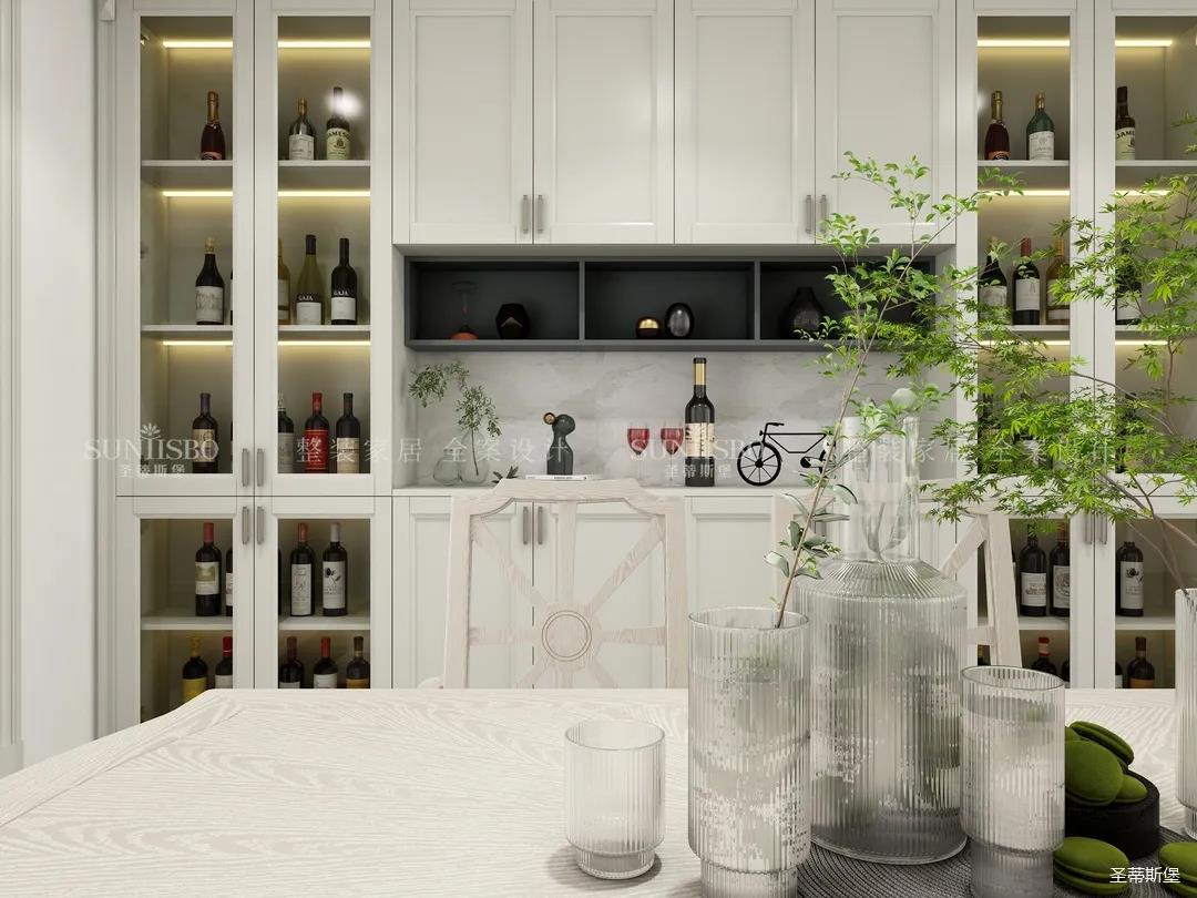廚房從屋主的飲食習慣出發,運用溫柔的莫蘭迪色彩(仿古白)打開了美式櫥柜定制的新世界!在美式輕奢的基調上,進行線面模塊的靈活組合,在滿足廚房基本需求的同時也將儲物優勢傳達到每一細節處。